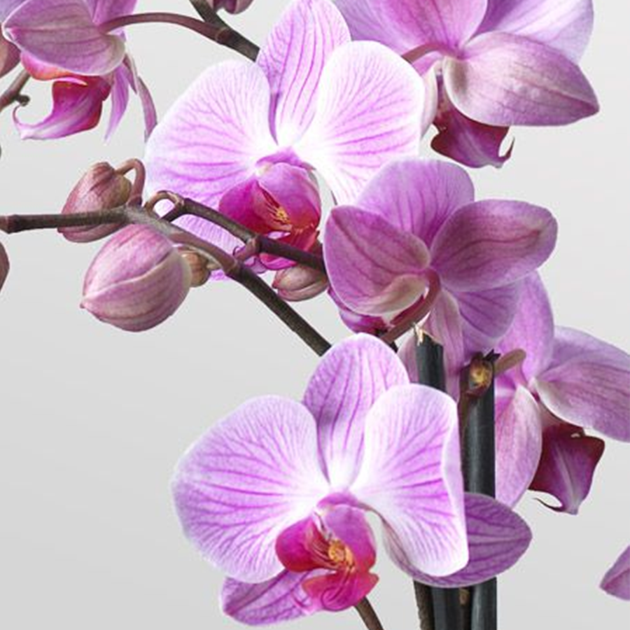 Una bellissima pianta di orchidea phalaenopsis rosa a due rami (h, 60cm circa) in vaso. Il nome Phalaenopsis significa “Orchidea simile a una farfalla”, per la bellezza dei suoi fiori e la sua eleganza è ideale per chi cerca un pensiero floreale raffinato che arriva dritto al cuore! Il vaso potrebbe differire nella forma e nel materiale a seconda della disponibilità.