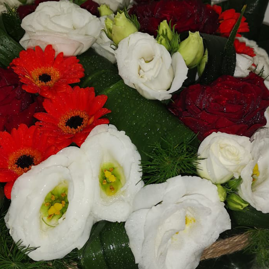 Sushi Flowers elegante composizione cm 20x20, appoggiata sopra uno specchio di cm 30x30.